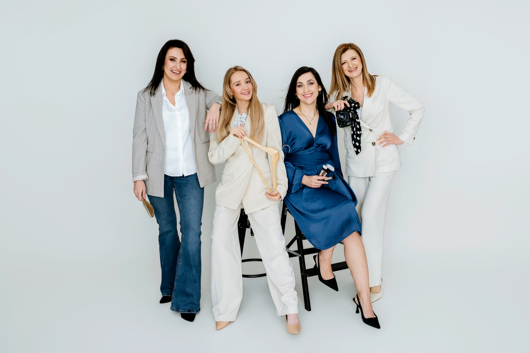 Na początku ustalamy kierunek i styl zdjęć. W dniu sesji wykonujemy makijaż i stylizację włosów — tak, aby wizerunek był spójny i gotowy do pracy przed aparatem.